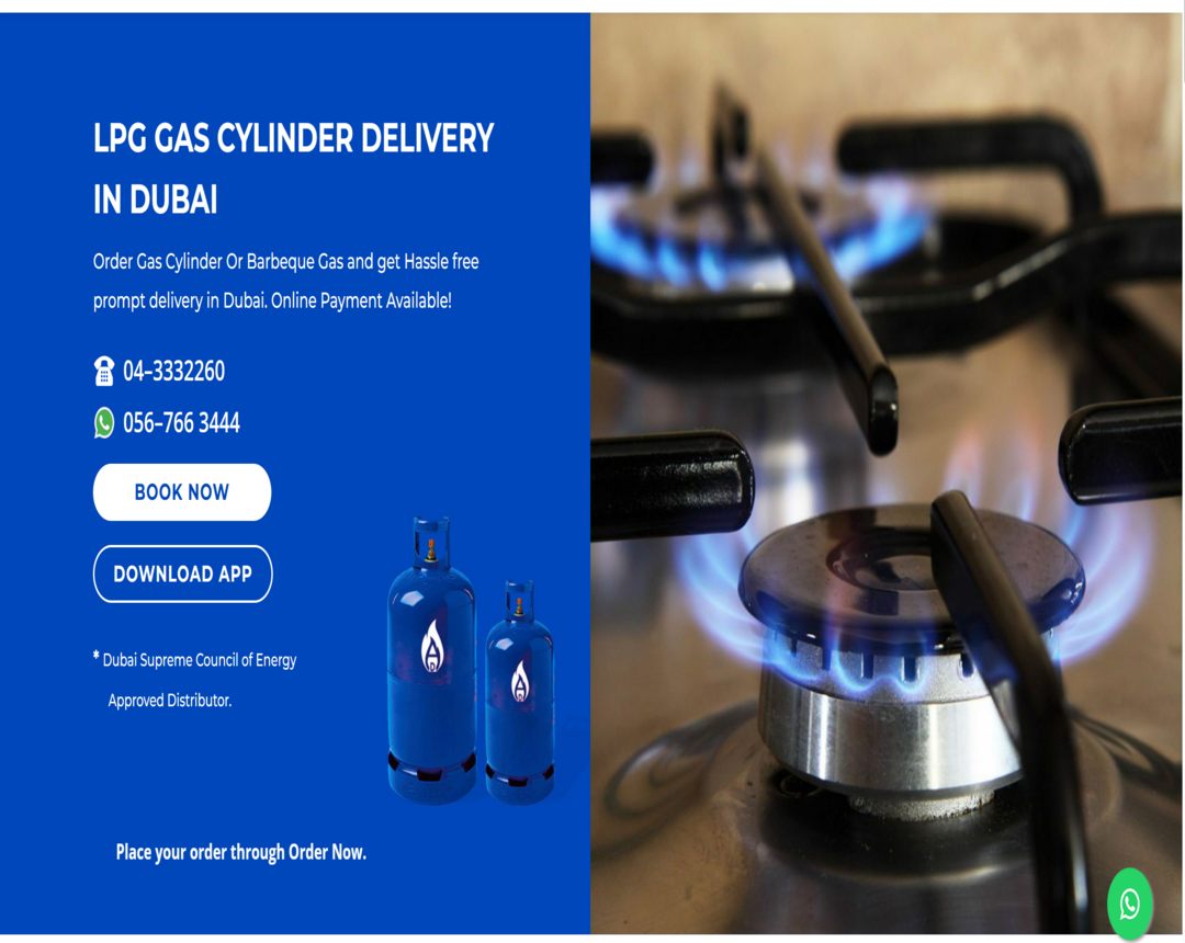 AD LPG provides online solution for booking LPG Cylinders all across Dubai. You can book through our App and track the position of the delivery. Payment can be made either through credit card or by cash at the delivery time. Experience less waiting time and a faster delivery with AD LPG.Our user-friendly mobile app ensures a seamless booking experience anytime, anywhere. Each gas cylinder is safety checked and sealed before dispatch to guarantee the highest quality standards. We also offer free installation support and expert guidance for safe usage. With a dedicated customer care team available 20×7, AD LPG ensures complete convenience and satisfaction for every customer.We are committed to maintaining the highest safety and service standards across all our operations. Our team of trained professionals works tirelessly to ensure every delivery is prompt and reliable.AD LPG also offers special deals and rewards through our loyalty program to thank our valued customers. Choose AD LPG and enjoy peace of mind with every gas delivery in Dubai.